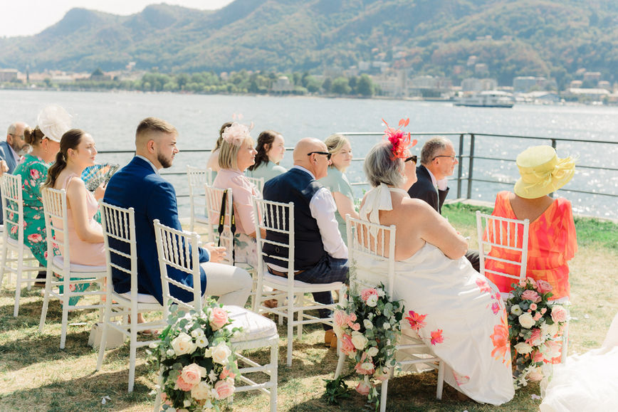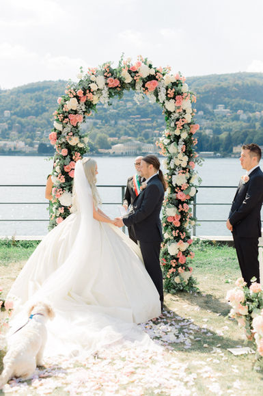 LAKE COMO WEDING AT VILLA GENO IN COMO CITY Hannah & Matt chose to celebrate in style at Villa Geno on Italy's Lake Como surrounded by their closest friends, family and the most adorable puppy! The public lawn in front of the villa was closed off to the public to enable their romantic wedding ceremony to take place right on the water's edge.